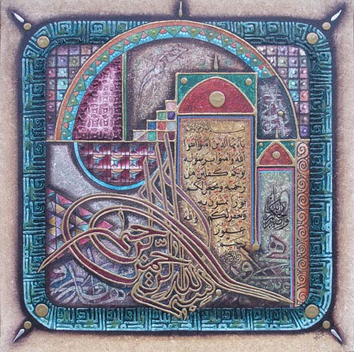 Al-Hadid, Chapter #57, Verse #28 28 O you who believe [in Musa (Moses) (i.e. Jews) and 'Īsa (Jesus) (i.e. Christians)]! Fear Allah, and believe in His Messenger (Muhammad ??? ???? ???? ????), He will give you a double portion of His Mercy, and He will give you a light by which you shall walk (straight). And He will forgive you. And Allah is Oft-Forgiving, Most Merciful. At-tur, Chapter #52, Verse #48 48 So wait patiently (O Muhammad ??? ???? ???? ????) for the Decision of your Lord, Surah 1. The Opening "In the center of painting" 1. In the name of Allah, Most Gracious, Most Merci |